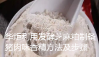华炬科技新产品研究所技术咨询委员会科研人员现推荐一项一种利用发酵芝麻粕制备猪肉味香精方法及步骤,该技术的目的在于提供一种方法简单、操作方便、原料来源广泛、提高了榨油后芝麻粕的利用价值的发酵芝麻粕制备肉味香精的方法,利用该方法制得的猪肉味香精不仅肉香浓郁、口感饱满、后味绵长,而且具有一定的营养保健作用,该技术具有如下优点:1、该技术方法通过现代生物工程发酵技术,对芝麻粕进行接种发酵,通过外加的蛋白酶酶解和微生物发酵过程中自身产生的蛋白酶,包括酸性蛋白酶、碱性蛋白酶、中性蛋白酶等蛋白酶,可以部分或完全替代商业酶制剂来水解动物蛋白制备蛋白水解液,降低了生产成本,便于工业化生产。再加入还原糖、氨基酸、硫胺素等辅料利用美拉德反应制备肉味香精,方法简单、操作方便,利用该方法制得的肉味香精不仅肉香浓郁、口感饱满、后味绵长。2、该技术方法中微生物发酵芝麻粕的过程中,将发酵芝麻粕蛋白质酶解技术与美拉德反应结合,使发酵芝麻粕蛋白质得到充分水解,提高榨油副产物芝麻粕中芝麻蛋白的利用价值,且提高基料中氨基酸、肽、多肽、蛋白质等含氨基化合物进行美拉德反应,其产物挥发性强,特征香气明显,提高了产品的营养价值和肉类特征风味,口感也更加丰满现将该一种利用发酵芝麻粕制备猪肉味香精方法及步骤及技术方案及实施例介绍如下供研究交流参考:(311211 313657)