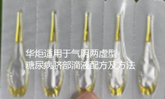 华炬科技新产品研究所技术咨询委员会科研人员现推荐一项一种适用于气阴两虚型糖尿病脐部滴液配方及方法,该技术通过健脾益气养阴的中药配伍,达到刺激胰岛细胞分泌,改善胰岛素抵抗,降低血糖的作用。该技术在肚脐处直接滴药,无需胶布粘贴,避免贴敷导致人体产生过敏;药剂5分钟快速吸收,吸收率更高,效果更好。采用该技术方案,具有的有益效果如下:该技术诸药合用,通过健脾益气养阴的中药配伍,达到刺激胰岛细胞分泌,改善胰岛素抵抗,降低血糖的作用,其针对临床上以神疲乏力,头晕肢乏,手足心热、大便干燥、心烦不舒为主症的气阴两虚型的糖尿病患者,其疗效显著,治疗总体有效率达到93%。且使用方便,吸收率高,且可避免膏贴可能造成的过敏等症状,患者对肚脐滴液的依从性高达95%,现将该一种适用于气阴两虚型糖尿病脐部滴液配方及方法及技术方案及实施例介绍如下供研究交流参考:(411211 563269)
