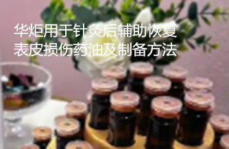 华炬科技新产品研究所技术咨询委员会科研人员现推荐一项一种用于针灸后辅助恢复表皮损伤药油及制备方法,该技术的目的在于:提供一种用于针灸后辅助恢复表皮损伤的药油及其制备方法,以纯中药原材炮制而成,具有药效缓和、疗效好等优点,还对针灸所对应的穴位有激活功能该技术与现有技术相比,该技术药油的有益效果如下:该技术以中医理论为指导,针对针灸刺伤皮肤所产生的各种症状有效,以消肿止痛、散结祛瘀为本,辅以收敛生肌、补气养血和通经活络,全面治疗扎针引起的皮肤损伤症状,达到标本兼治的目的,现将该一种用于针灸后辅助恢复表皮损伤药油及制备方法及技术方案及实施例介绍如下供研究交流参考:(411761 331401)