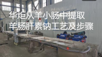 华炬科技新产品研究所技术咨询委员会科研人员现推荐一项一种从羊小肠中提取羊肠肝素钠工艺及步骤,该技术所要解决的技术问题:针对目前提取肝素钠的氧化法和酶解等方法制备的肝素钠活性损失大,难以得到较高效价的肝素成品,且回收率低,纯度低的问题,提供了一种从羊小肠中利用发酵,曝气,煮沸,超滤膜浓缩干燥制备得肝素钠的方法,该技术制备的肝素钠其效价可达155~170u/mg,回收率达到97%以上,该技术与其他方法相比,有益技术效果是:(1)该技术制备的肝素钠其效价可达155~170u/mg,回收率达到97%以上;(2)该技术制备的肝素钠所需原材料成本低,制备步骤简单。现将该一种从羊小肠中提取羊肠肝素钠工艺及步骤及技术方案及实施例介绍如下供研究交流参考:(311271 355657)