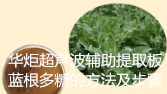 华炬科技新产品研究所技术咨询委员会科研人员现推荐一项一种超声波辅助提取板蓝根多糖的方法及步骤,该技术与现有技术相比,该技术采用粉碎、脱脂、超声波细胞破碎仪提取、离心、浓缩、醇沉及真空干燥等技术制备板蓝根多糖,所提出的工艺具有快速、简便、节省能源、收率高等特点,且有利于保护板蓝根多糖中含有的诸多活性物质。所采取的提取方法为超声波细胞破碎仪提取,相比常规热回流提取法,可将提取时间由数小时缩短至10min,而提取率提高近一倍,得到的板蓝根多糖具有良好的体外抗氧化活性,具有很好的ABTS+自由基清除效果,广泛适用于抗氧化功能产品中,现将该一种超声波辅助提取板蓝根多糖的方法及步骤及技术方案及实施例介绍如下供研究交流参考:(441231 231469)