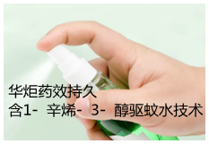 华炬新产品研究所技术咨询委员会科研人员现推荐一项药效持久含1‑辛烯‑3‑醇驱蚊水技术配方,该技术产品以1-辛烯-3-醇作为驱蚊活性成分,并辅助香精油、乳化剂和溶剂溶液,各有效成份相辅相成,协同起效,对蚊虫有独特驱避功效,并且药效持久,气味清香,对人体无刺激,现将该药效持久含1‑辛烯‑3‑醇驱蚊水技术配方实例介绍如下供研究参考:(471651 223556)